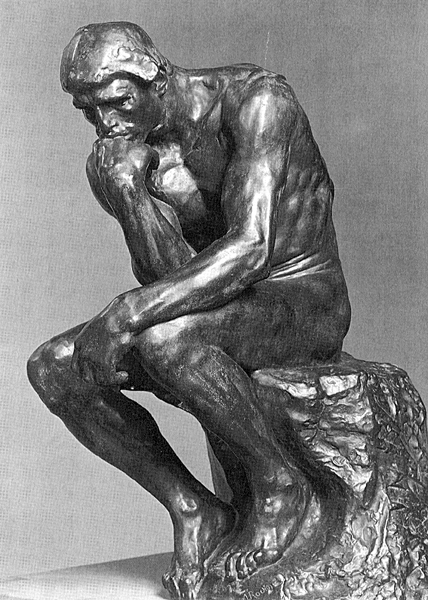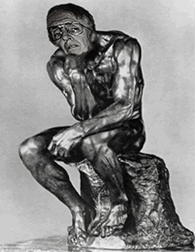 I also like to work other visual images into my courses, not because I think my students are still in grade school but because I personally enjoy the scrapbook approach to philosophy. A good photo of an author somehow makes it easier to "hear" his or her voice in the text, as do other sorts of images such as sculptures and paintings. Most of the philosophers we are going to study predate the invention of photography, but a sensitive artist can capture the spirt of the author in a way that makes our own reading experience more intimate and, I firmly believe, more effective in the message it has for our lives. For instance, I invite you to click on the picture (shown above) of Rodin's famous statue of "The Thinker" to see a beautiful full-page photo of that stunning work. Look at it for a few minutes, the way you would savor an expensive piece of candy or a charming bit of melody, and feel what Rodin thought it was like to be an intellectual. Then imagine you are the Thinker. (Click here to see what happened when I did that.)